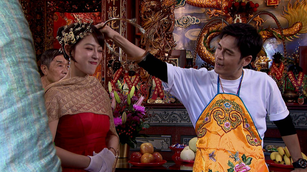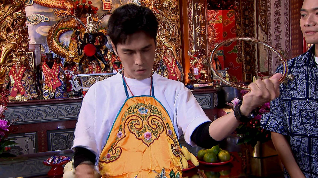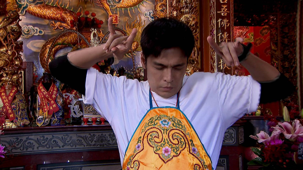 ▲ 演太子爺公上身時,Gino說:只知道拜完太子爺公,心裡默默對話,打完嗝閉上眼後,他的身體就被帶動了。(圖:三立)