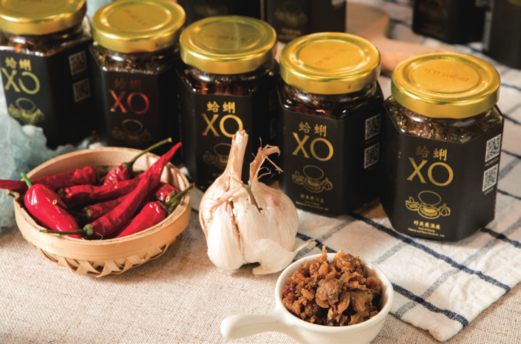 其次是蛤蜊保鮮期短,為延長銷售期、提升產品價值,她窮盡腦汁研發蛤蜊 XO 醬。取好美寮蛤蜊、布袋港蝦米、見龍里日曬菜脯,以及鹽地紅蔥頭、四湖蒜頭,將大海鮮美、鹽地甘味全炒進一罐 XO