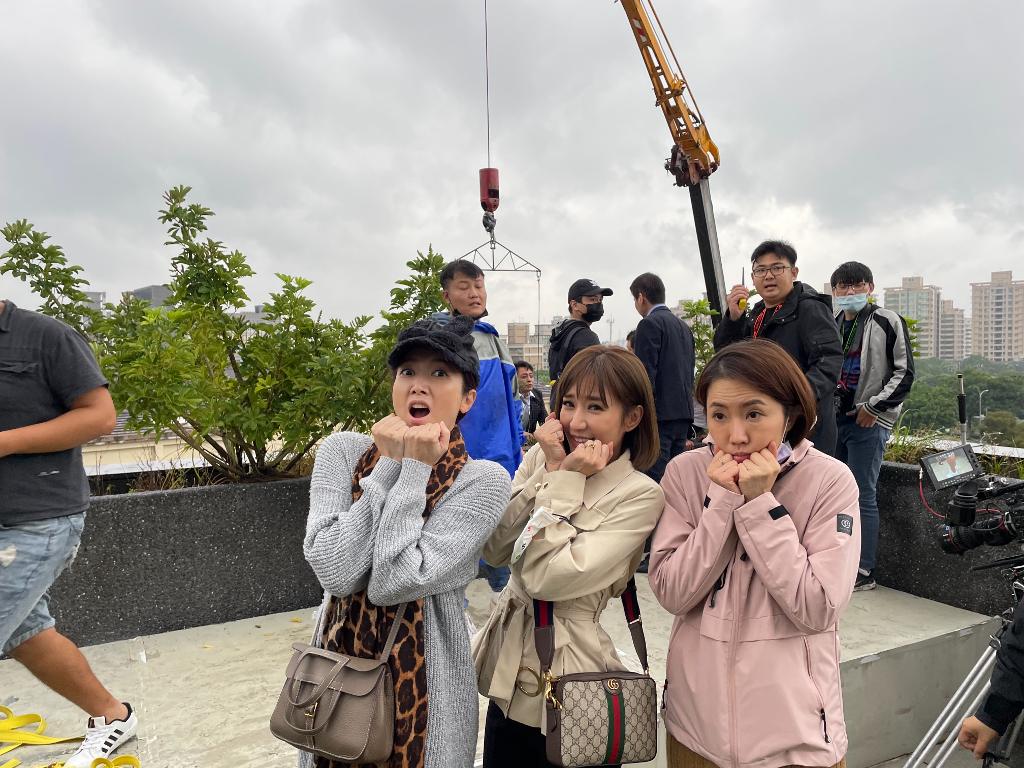 ▲ 《市井豪門》演員左起廖家儀、羅巧倫、謝忻特別到天台觀看。(圖:民視)