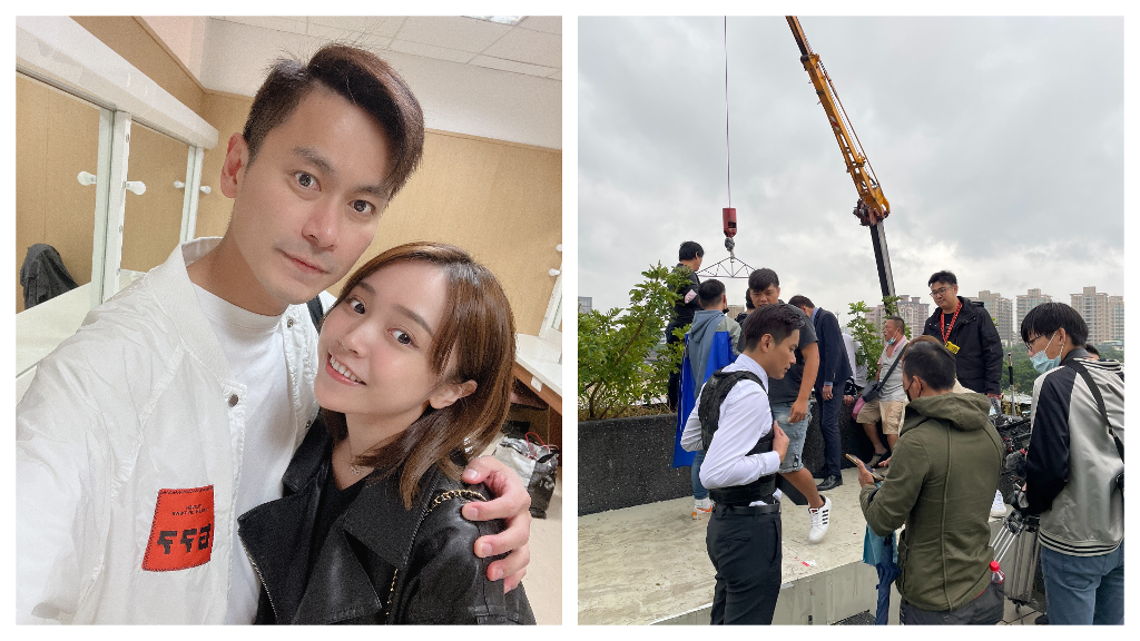 只是天氣不穩定,加上穿鋼絲掛在牆外,工作人員也無法即時撐傘,沒想到經過一整天的拍攝,也有點失溫感冒,讓他暖心的是,老婆呂璦唯知道他要拍墜樓的戲,就說要陪在旁邊,真的很感動。