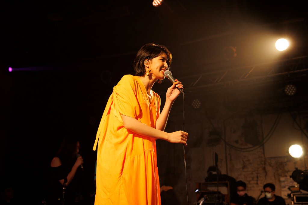 ▲ 演唱到專輯同名歌曲〈今天陽光特別耀眼特別和諧〉時,全場歌迷齊聲與曾沛慈合唱,讓她開心不已。(圖:亞神音樂)