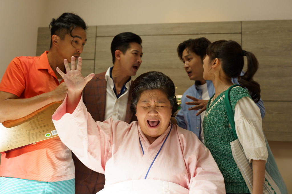 ▲ 《我的婆婆怎麼把OO搞丟了》劇照03-神秘OO失聯警察找上門質問婆婆,蘇家人驚呆(由左至右王少偉、鍾欣凌、Darren、蘇晏霈)。(圖:威視電影)