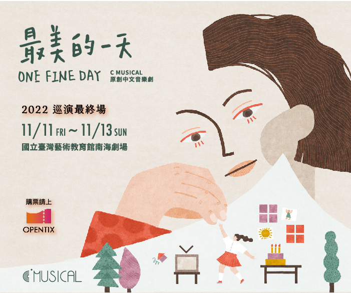 由C MUSICAL製作的臺灣原創音樂劇《最美的一天》,自2017年首演以來,每次巡演都能感動大批觀眾,由大甜、張稜、廖子萱、劉睿筑、紀妍潔等演員,在舞台上以音樂及感人的劇情,療癒你我的心;並特邀插畫家葉思佑為作品打造專屬於2002年的主視覺及繪本《女孩與翅膀》。《最美的一天》以母親與孩子之間的相處與告別為主題,細膩而濃烈的情感,讓不少觀眾在觀賞的過程中數度紅了眼眶,而在這次的版本中,導演張仰瑄與作曲者張芯慈也特別創作了全新曲目,期待帶給舊雨新知不同的驚喜與感動。《最美的一天》臺北場將於本週末(11月11日至13日)在南海劇場帶來四場演出,詳細演出資訊請洽OPENTIX售票網。