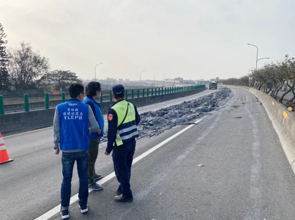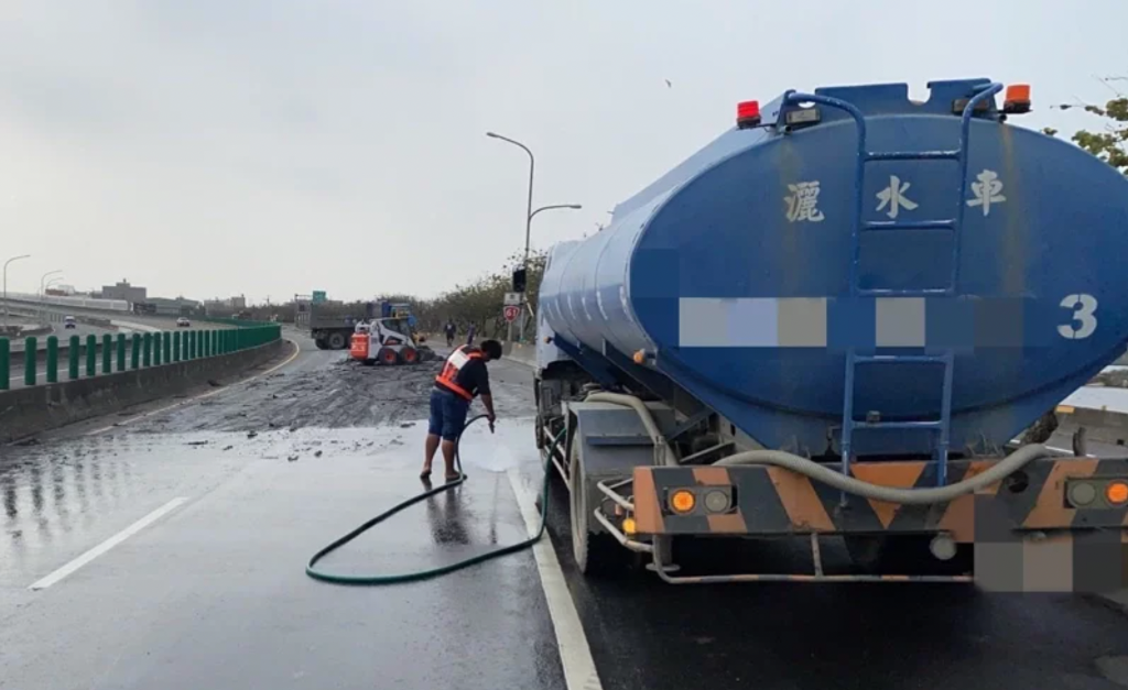 北港分局員警據報火速趕到現場,立即放置交通錐等警戒設施,並封閉南下外線車道執行交通管制引導或疏導措施,另外還通知公路總局水上工務段派人員到場協助清除泥漿砂石,歷時近7個小時才於下午13時30分清潔完畢,恢復通行。