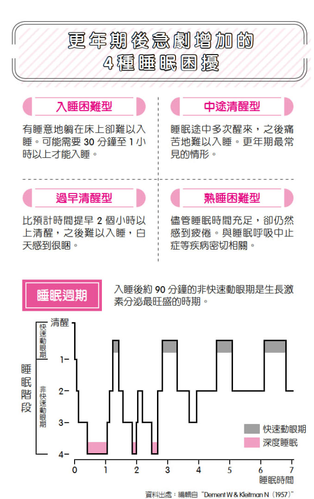 「失眠」是進入更年期的不適症狀之一,其中以「夜間頻繁醒來」最為常見。