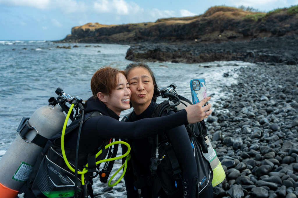 ▲ 温貞菱、楊麗音一起深潛。(圖:東森)