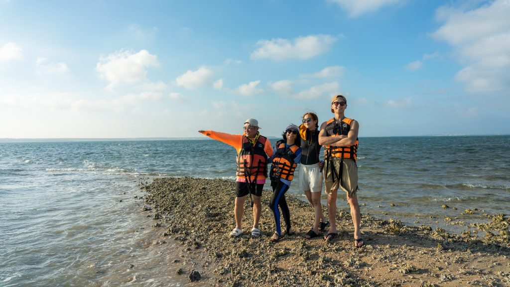 談到是否在結伴同行時有發生意見不合的時候,温貞菱笑喊好像沒有發生過,「若有的話就會剪刀石頭布!」張軒睿直呼:「整個行程走起來對我來說已經很滿足了,唯獨潛水行程,我跟舜哥沒有下水,但還是有一起去海漂實驗室畫了作品,自己非常喜歡。」