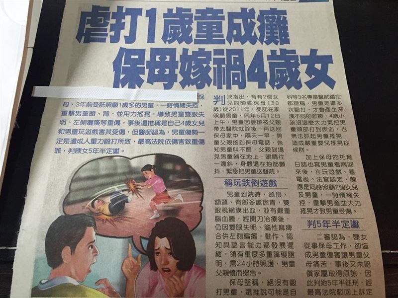 ▼▲法院認定保母有虐待行為,依成年人故意對兒童犯傷害致人重傷罪,判處保母五年有期徒刑。但保母始終不認錯,甚至人間蒸發。(圖/受訪者提供)