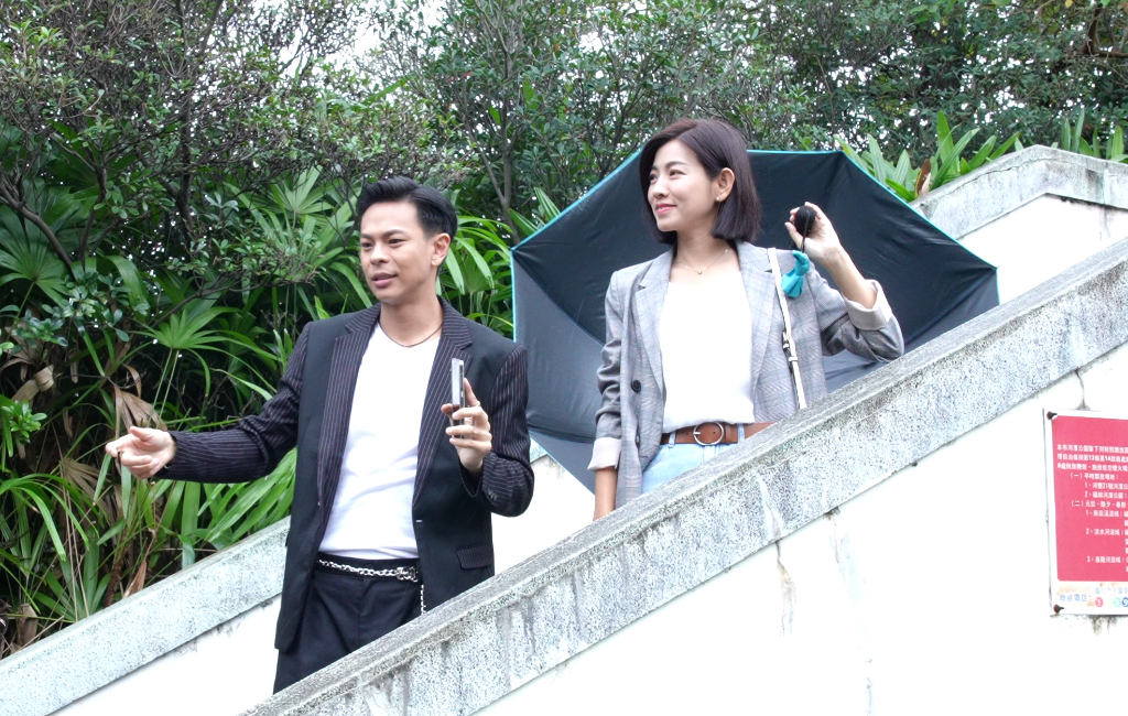 米可白和孫綻在細雨紛紛的天氣拍攝,