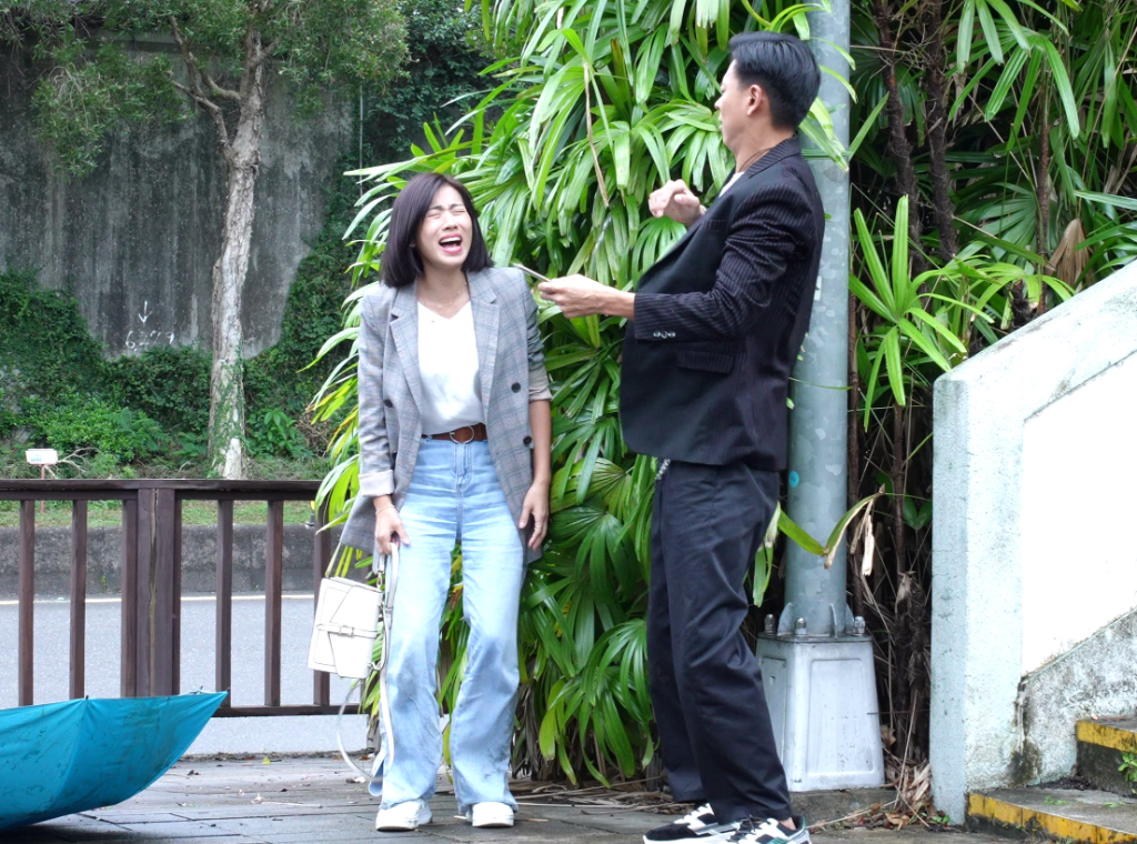 ▲ 米可白(右)第一場戲就是和孫綻滾樓梯。(圖:台視)