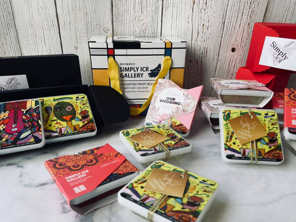 水果果凍禮盒,設計概念以「愛啟兒藝廊」為設計構想,採用學員的畫作加工後製成為果凍上的貼紙,貼紙風格各有不同,都是孩子們天真爛漫個性的延伸,也是各自性格的展現,更是一種與外界無聲的溝通,左下角也有愛啟兒們創作的主題與命名。漂亮的貼紙加上好吃的果凍,送禮自用兩相宜。