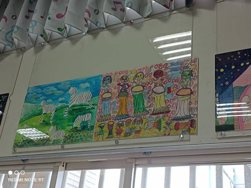 ▲這張打鼓的圖畫是作業所中一位愛啟兒女孩所畫的
