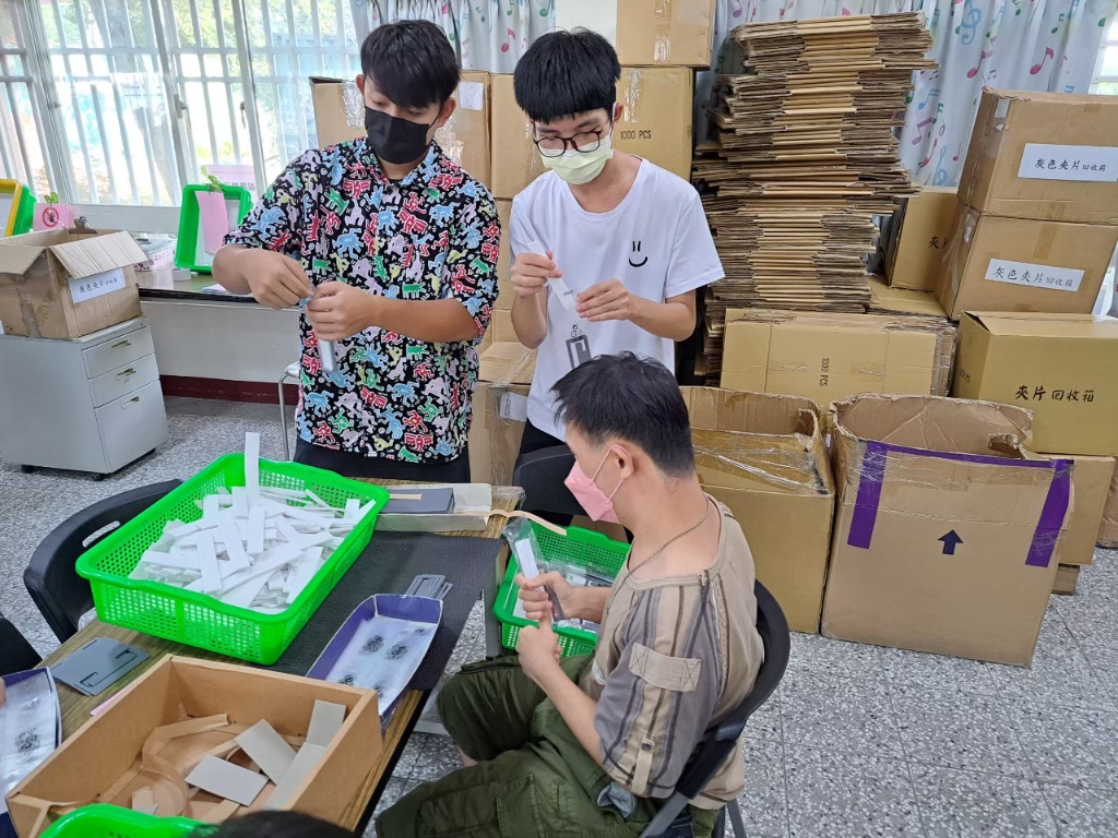 產品包裝、裝箱過程中也都由孩子們負責完成,培養他們的專注力、耐心,過程中除了讓心智穩定成長、學習自立以外,透過代工作業賺取的獎勵金也幫助他們帶來收入,降低家庭負擔,增加自我肯定與價值。
