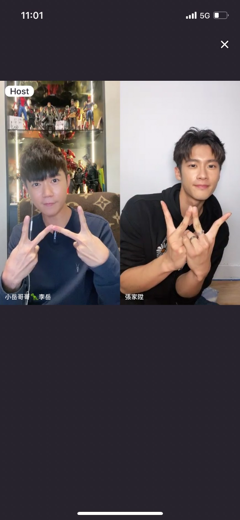 ▲ 李岳(左)和張家陞隔空比手勢同框合照。(圖:17LIVE)