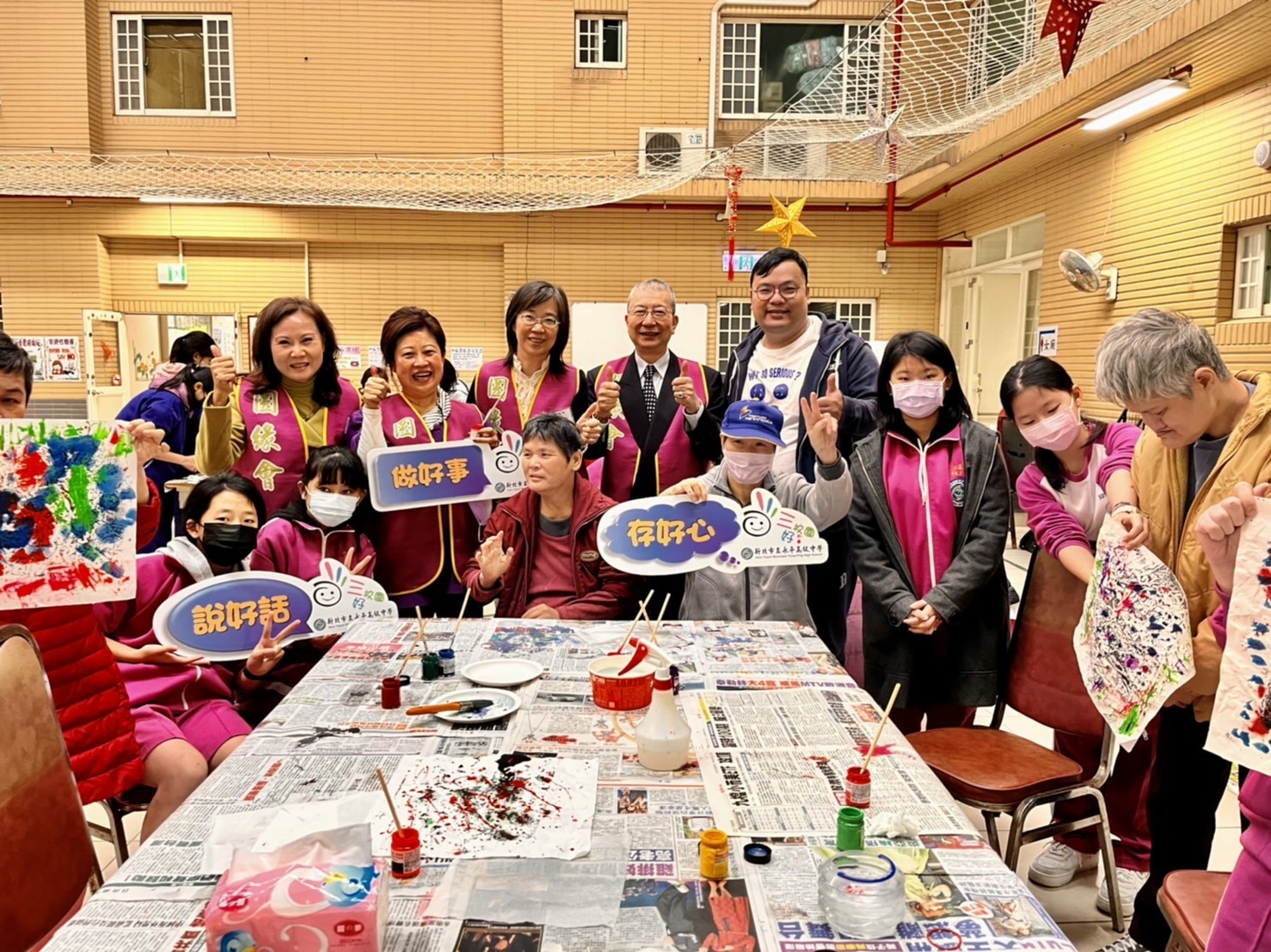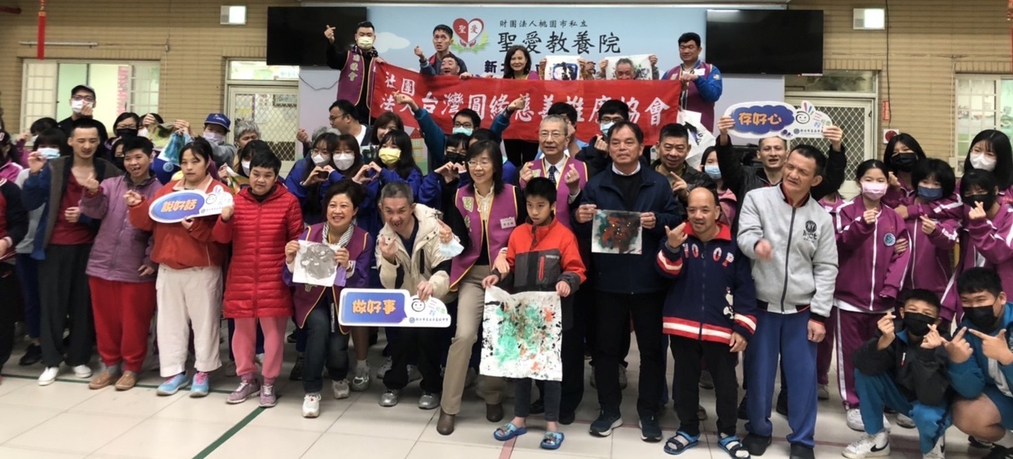 ▲台灣圓緣慈善推廣協會湯發鉅創辦人(二排正中間)、李玉嬋理事長(二排左3)、曹晏華創會理事長(二排左2) 、林金滿理事(二排左1) 、聖愛教養院院長黃譯宏偕同圓緣及永平中學志工進行一日快閃無筆彩繪服務(圖/台灣圓緣慈善推廣協會)