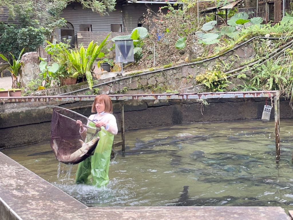 王瞳表示很感謝劇組的貼心,找到生態農場的鱘龍魚池,