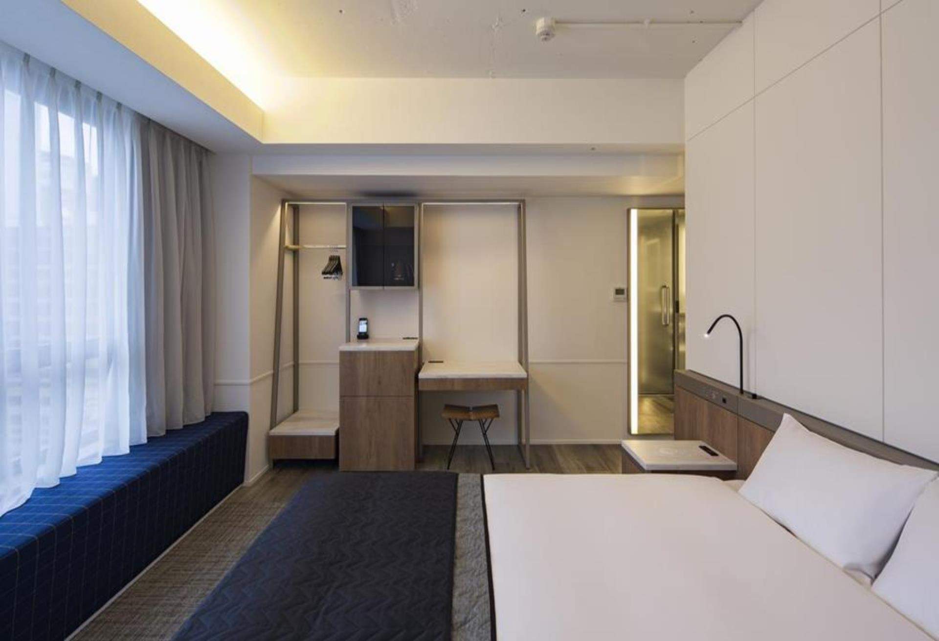 「心齋橋旗幟酒店」特色: 新穎、充滿設計感與新潮品味的心齋橋旗幟酒店就坐落在齋橋商店街旁,從一進門就能感到一股氣宇非凡的裝潢質感。寬闊的迎賓大廳與接待櫃檯上有會中文的服務人員,一旁則是配置了閃爍溫暖爐火的休息區,同時供應著免費的現磨咖啡,還沒入房就有被款待的貼心感。為因應不同旅遊型態,心齋橋旗幟酒店規劃了多種房型格局,豪華房型強調寬闊的獨享空間,而標準房型再依單床、雙床、三人房及精緻客房來分配,均比日本普遍飯店來得寬大舒適,而裡頭則為簡約設計與充裕的貼心備品。
