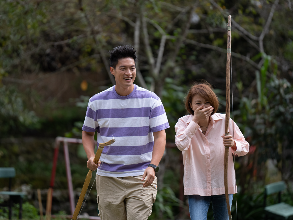 隔日一早6點半,郭子乾便帶著大夥們到他以前拍戲時曾造訪過的「全台灣最美森林國小」,一行人體驗深山孩子們的日常與課程,向射箭隊學習射箭的技巧並進行PK賽,最後一個與學生比賽的李翊君,最後一箭竟射出花甲少年隊的最高分,同時也是四人中唯一的破蛋成員,驚人表現完全跌破眾人眼鏡,連好友郭子乾都忍不住吐槽:「連弓都拿反了,竟然給我射4分!」李翊君的意外射箭功力,也不禁讓人想起上一季她老公檢場在射箭場上的英勇戰績,兩人完全是演藝圈的「神射眷侶」!