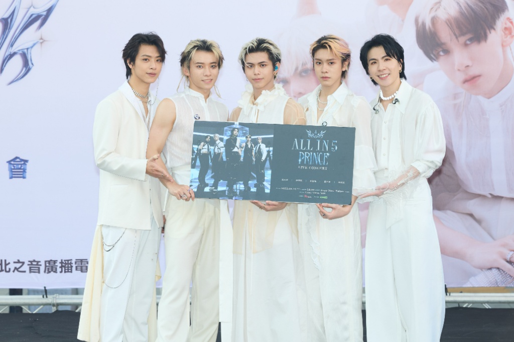 王子系男團ALL IN 5 今日(1/8)在台北舉辦《PRINCE》專輯簽唱會,現場氣氛熱烈,歡呼聲充滿西門町聯合醫院廣場;去年12/16推出《PRINCE》實體專輯的ALL IN 5 在這張專輯上下了十分的努力,不僅挑戰〈PRINCE〉超難戰舞,同時也以韋禮安打造的〈不愛了〉讓大家見證歌唱功力,〈PRINCE〉MV線上點閱己破百萬,〈不愛了〉也己破50萬,好成績讓男孩們十分開心:「覺得人生里程碑有一個解鎖了,接下來要朝向下一個一百萬。」ALL IN 5 專輯簽唱會從台中、高雄回到台北,ALL IN 5見到嘉賓吳映潔直喊:「店長!」去年在實境綜藝節目當實習生的ALL IN 5 在吳映潔眼中真的是「長大了。」