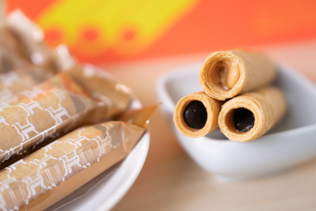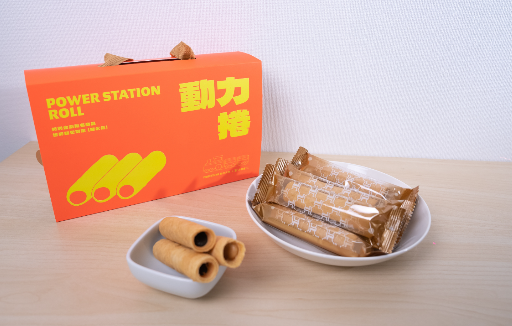 產品包裝設計由深耕文創產業的華研國際音樂一手包辦,外盒潮流感十足,以最時髦的螢光橘搭配一台火車圖案,在眾多一片紅通通禮盒市場中最吸睛!負責蛋捲主理人是第五屆法國世界麵包大賽冠軍陳永信,曾於日本、法國深造學藝,擅長歐式麵包、 藝術麵包、各式中西點,常取時鮮風味食材,巧妙運用 在麵包餡料及麵團,引領風潮。「動力捲」推出兩種芝麻與花生兩種口味,陳永信表示:「這次是推出法式蛋捲口感的蛋捲,內層有各包 2 種餡料,分別是芝麻與花生,一共有兩種口味,都是用最上等的原物料製做而成。」