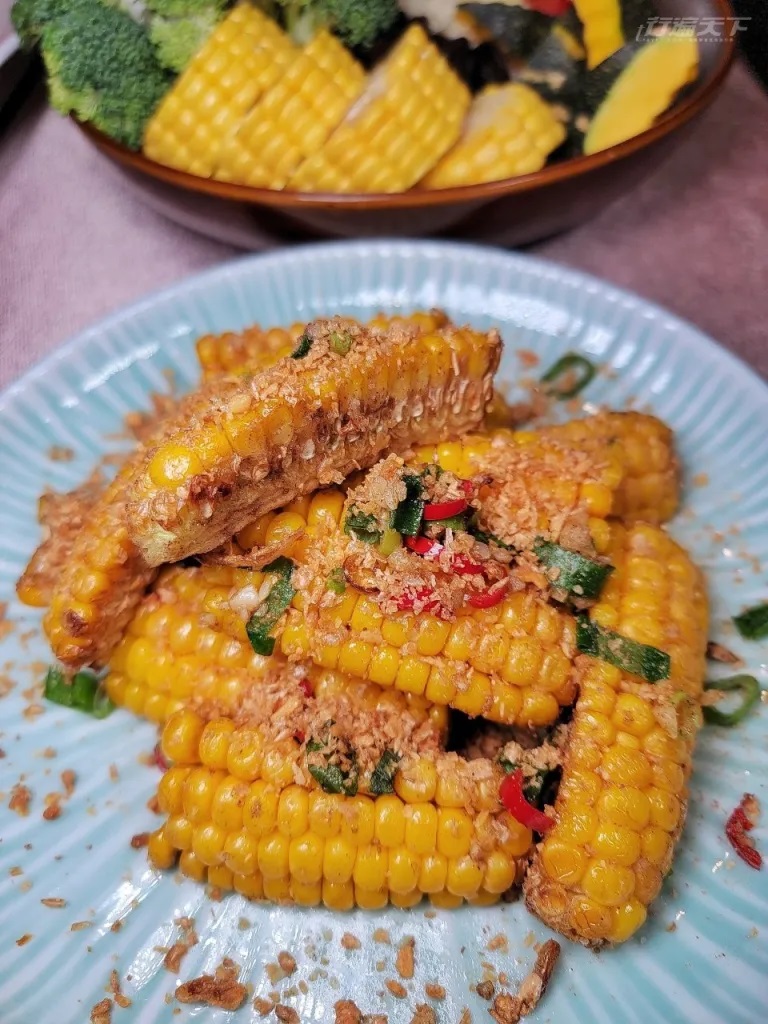 ▲ 椒鹽玉米╱280元。這道鹹香甜美的椒鹽玉米以避風塘風味擄獲人心! 炸至香氣逼人的蔥、蒜、辣椒和玉米怎麼可以這麼搭,絕讚人氣下酒菜!(圖:行遍天下)