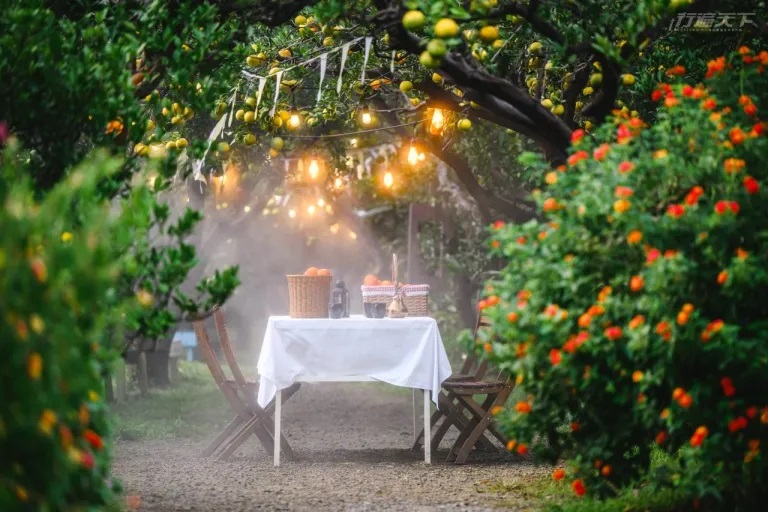 一二月正進入橘子、柳橙產季,暖暖冬日陽光下水果都逐漸轉紅熟,在苗栗明德水庫旁有處在空氣中瀰漫香甜橙味的莊園:橙香森林,跳脫了傳統農場的既定印象,橙香森林走的是更親民、舒適的遊憩空間,有大面積的草皮、山坡,而且四處都佈置了素雅的帳篷,不說的話還以為是來到了哪個豪華露營區,其中最知名一定要拍的是被橘子樹圍繞的網美玻璃屋,在傍晚夜色悄悄爬上蒼穹,樹梢昏黃的燈光亮起時,奇幻的氛圍拍起來真的美極了!