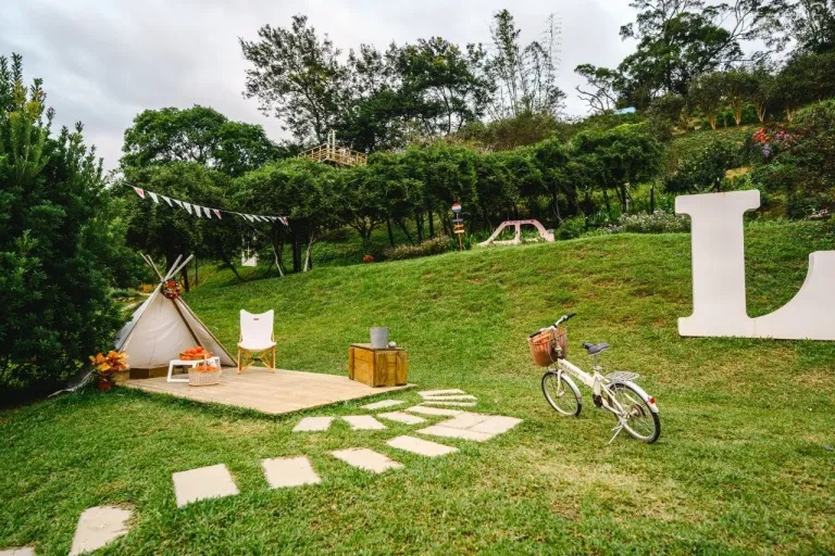 沿著步道穿過一整排塗上鮮豔色彩的鳥屋,走上山坡上的制高點,莊園在這邊擺設了一個花朵環繞的天空之門,雖然無法像哆拉A夢的任意門一樣穿過門就來到夢想都能實現的世界,但是走過這個天空之門卻也能將平日工作的煩惱留在門的另一端,讓自己在這片瀰漫著香甜的森林中度過無憂無慮的下午。