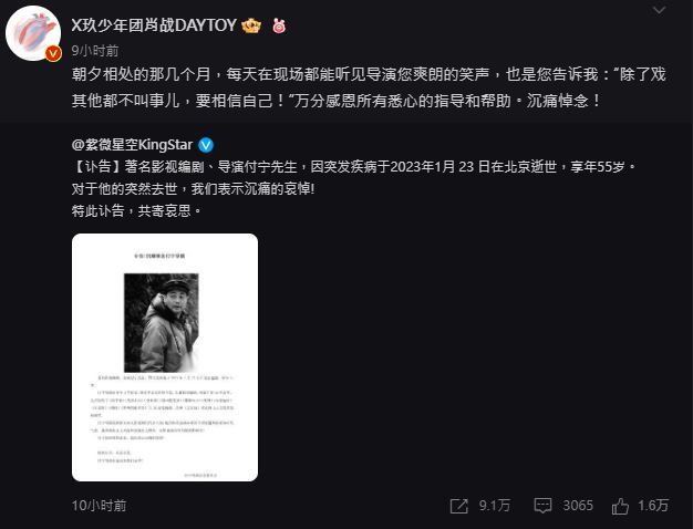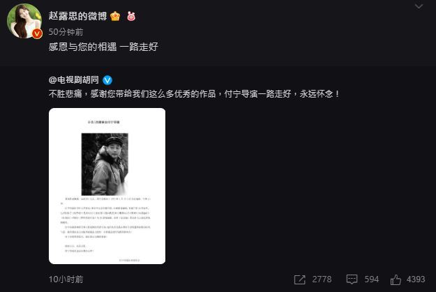 ▲中國名導付寧過世,消息突然讓不少合作過的演員相當震驚。(圖/翻攝自微博)