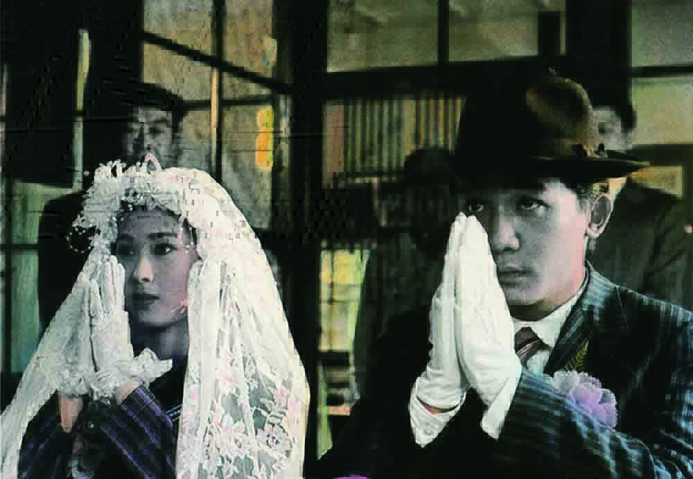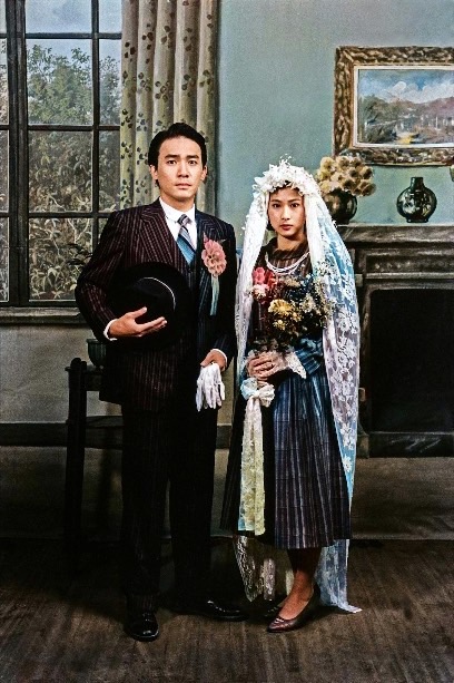 「新娘牽進來,添丁又進財…」喜氣洋洋的拜堂儀式,在迎娶八音吹奏下,26歲的梁朝偉與23歲的辛樹芬,穿著西式禮服婚紗,依循台灣民間古禮演出《悲情城市》的經典戲。33年後回看,不但留住片中小倆口青春無邪的容顏,透過劇組用心考據,更原味呈現了戰後台灣的時髦婚紗與時代情懷。