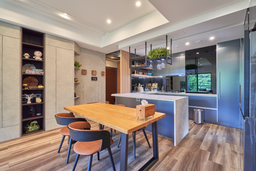▲ 張棋惠家中的廚房餐廳,後方白色桌檯即為帝雉石。(圖:帽筆生花工作室)