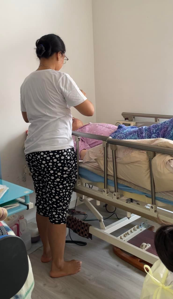 ▲ 外籍看護照護楊月娥母親。(翻攝:楊月娥臉書)