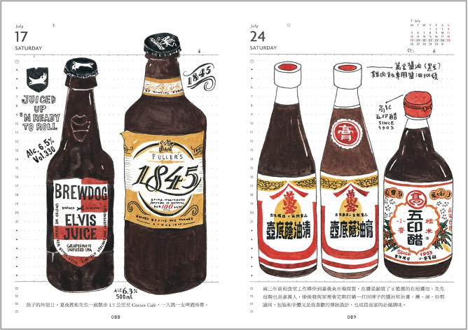 「當你不知道畫什麼時,就從記錄你身邊的人事物開始。」畫室老師曾這樣提示,於是我更潛心於日記的書畫:吃過的飯、讀過的書、走過的路、在乎的人⋯⋯就算現在,已經離開插畫工作多年,假日一得空還是一樣坐回書桌前,攤開一日一頁的日記本,沈浸於自己所創造出來的一方世界。插畫僅是最後的呈現方式;若我手裡執的不是畫筆,是相機便成相冊、是稿紙便成散文集;生活紀錄不求形式,是去欣賞、去觀察、去複習,進而最大化每一件看似流水的日常瑣碎和感受,某種程度也是在體現「一沙一世界,一花一天堂」那樣的哲理;而修行在日常,如何在每一口飯中感知到喜悅、在平凡事物中尋找「可看性」才是通往快樂滿足的途徑。