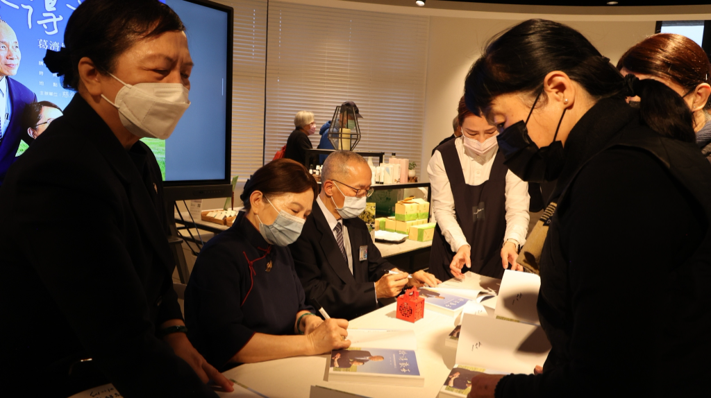 葛濟捨與孫慈喜(左)為《捨得歡喜》簽書