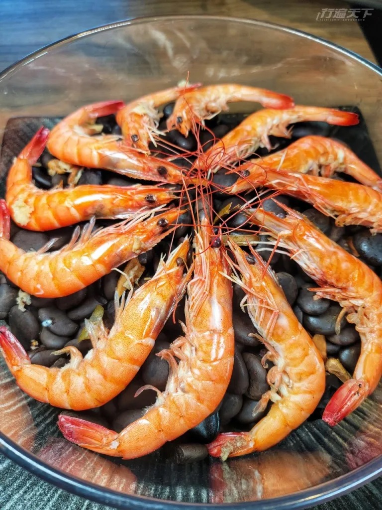 ▲ 紹興石頭蝦 ╱ 360元/一份六隻。以高溫石頭加入紹興酒及中藥材特製醬汁燜煮新鮮紅尾蝦, 香氣逼人!肉質鮮甜Q彈,還有五星級專人剝蝦桌邊服務。(圖:行遍天下)