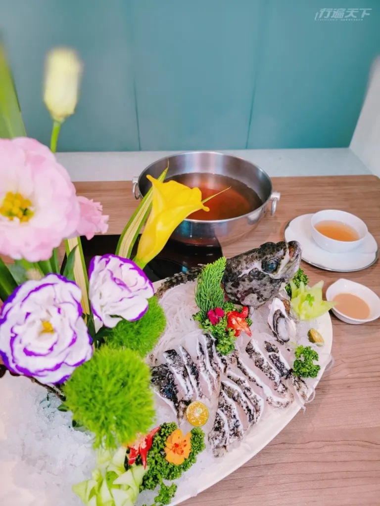 ▲ 龍虎石斑海鮮盤╱1400元。選用高雄永安龍虎石斑魚整尾切片搭配生蠔、花枝等,大器呈現新鮮風味,建議以北海道昆布柴魚高湯涮煮,鮮甜Q彈。(圖:行遍天下)