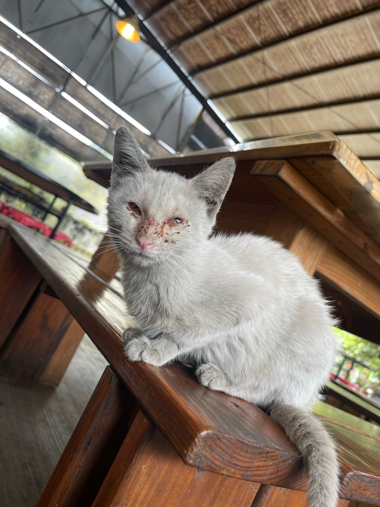 ▲ 邱偲琹在旅途中發現有一隻浪貓,疑似快看不見又有感冒跡象。(圖:周子娛樂)