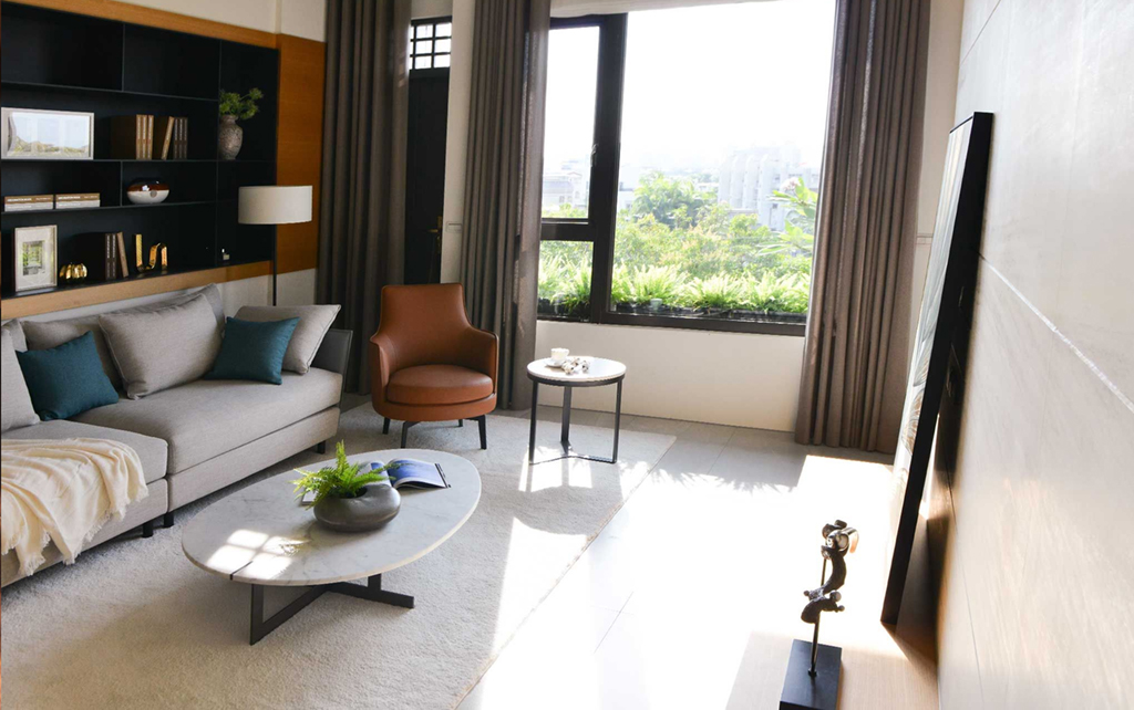 無障礙超大型落地窗的功能與好處,不僅使室內連接室外開放空間、視覺無障礙的讓室內地平線無限延伸,引入更多自然光和空氣流動、使空間使用彈性便利;專利地平軌設計可以用預埋式工法使其與地面近乎一致,或是直接安裝於地面只有1.5公分,符合無障礙設施規範中高低差在0.5公分至3公分內的設計,使孩童、老人、身障者都能輕鬆自在地通過,不再被阻礙絆倒。