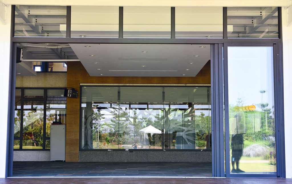 其次針對隔音與綠能上再進一步,開發真正的一體成形「雙層窗」,十五公分的外框配合五軌設計可支援雙層窗扇,中間空氣隔進一步阻擋隔音與冷熱有效節能降噪。並利用此外框延伸出無障礙落地窗,不鏽鋼軌道安裝地面上只有1.5公分高,不論是輪椅、腳踏車甚至機車、汽車都可以輕鬆通過,窗扇並可全收納單邊,使空間使用最大化。