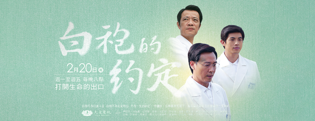 大愛劇場推出經典醫療劇《白袍的約定》,由尹昭德、吳朋奉、梁正群領銜主演,描述三位高屏地區「慈濟人醫會」醫師,找到當醫師的初心與熱情、從失意中轉念站起,並加入義診行列的故事,二月二十日起每晚八點在大愛電視播出。