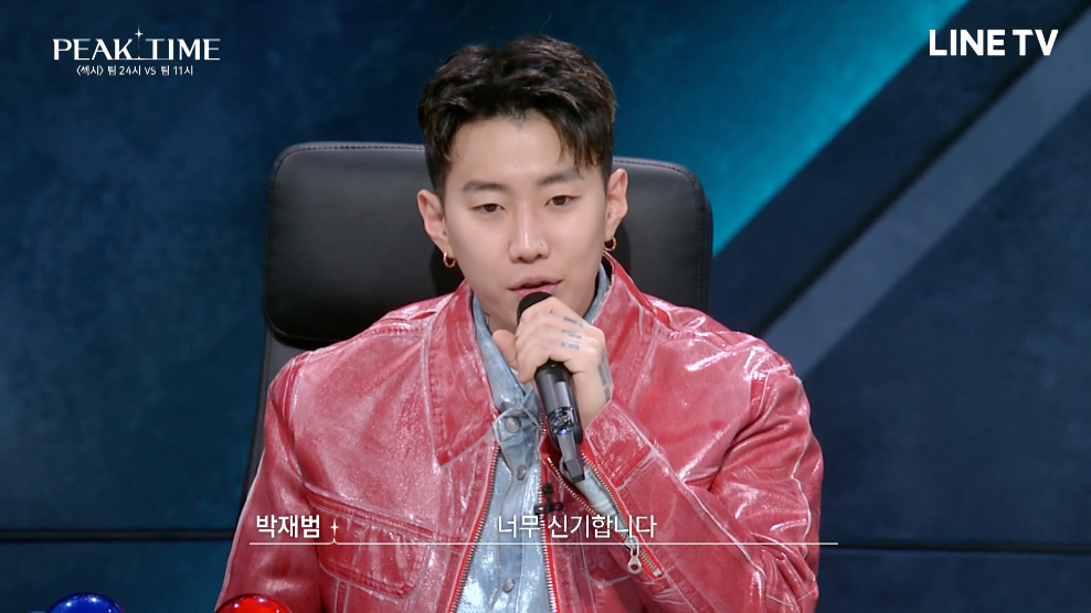 ▲ 《Peak Time》評審朴載範看完「兼差男團」表演直呼神奇。(圖:LINE TV)