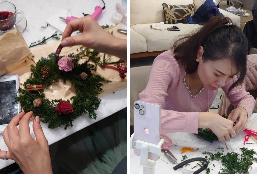 (圖)賓客親手製作聖誕永生花圈,點綴居家節慶感。