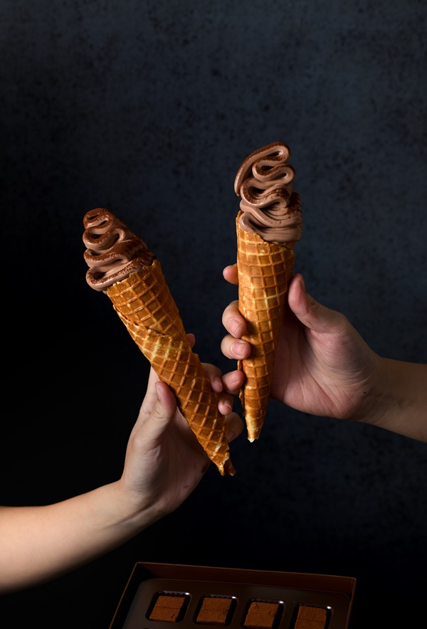 必點的《生巧克力霜淇淋》,整支長型甜筒裝滿濃郁霜淇淋,選用法芙娜頂級可可搭配法國諾曼地鮮奶油,展現生巧克力細緻滑順、綿密柔軟,讓人意猶未盡,可不可以再來一支呢!
