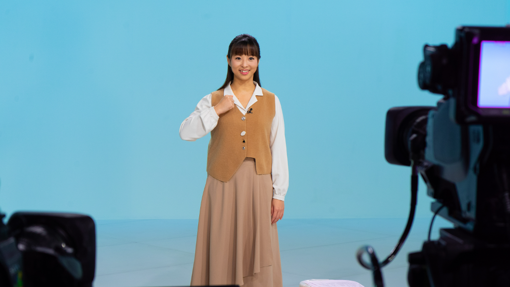 主持人林嘉俐與手語顧問老師鄭毓蘭互動