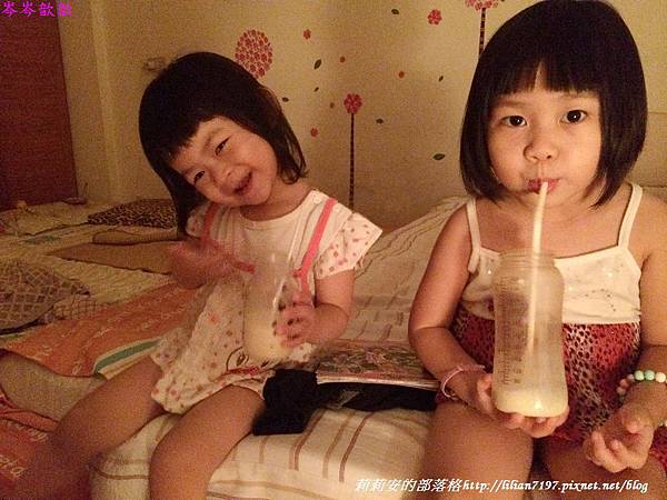 ▼後期就會看到兩隻小鬼開著夜燈用吸管喝著奶瓶的有趣畫面