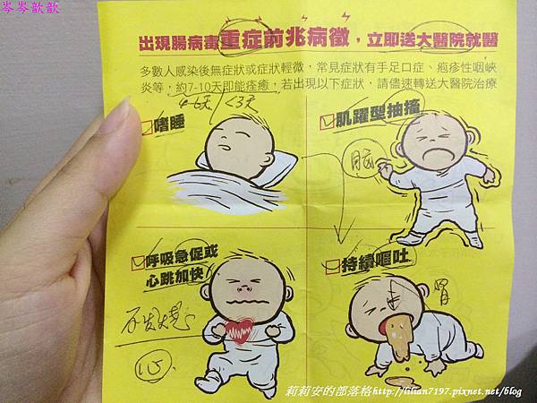 另外就像上面說的,腸病毒有分好幾型,每位小孩發病症狀也不盡相同