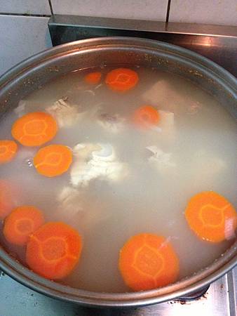 於是我改熬魚骨湯,再加入一些洋蔥、紅蘿蔔一起熬很香甜