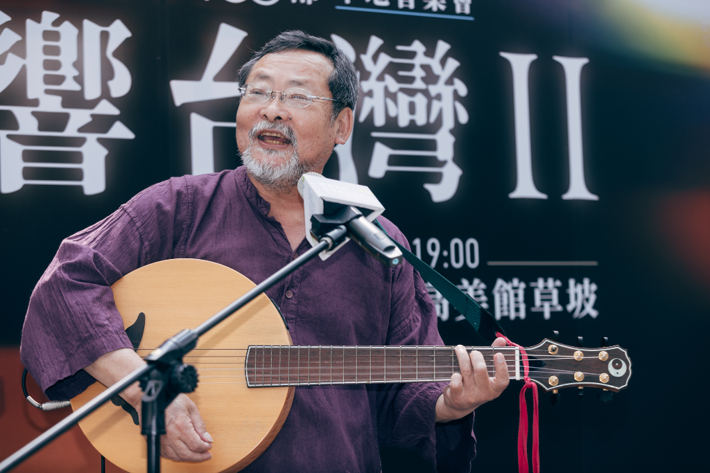 ▲ 音樂創作人陳明章以扣人心弦的溫暖嗓音,自彈自唱電影《天馬茶房》的〈幸福進行曲〉,悠揚曲調讓現場如癡如醉。(圖:國家影視聽中心)