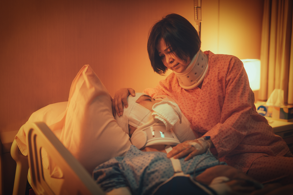 ▲ 台灣真實事件改編《最佳利益》血淋淋呈現,楊貴媚手顫毛巾堵李玉璽口。(圖:齊石傳播)