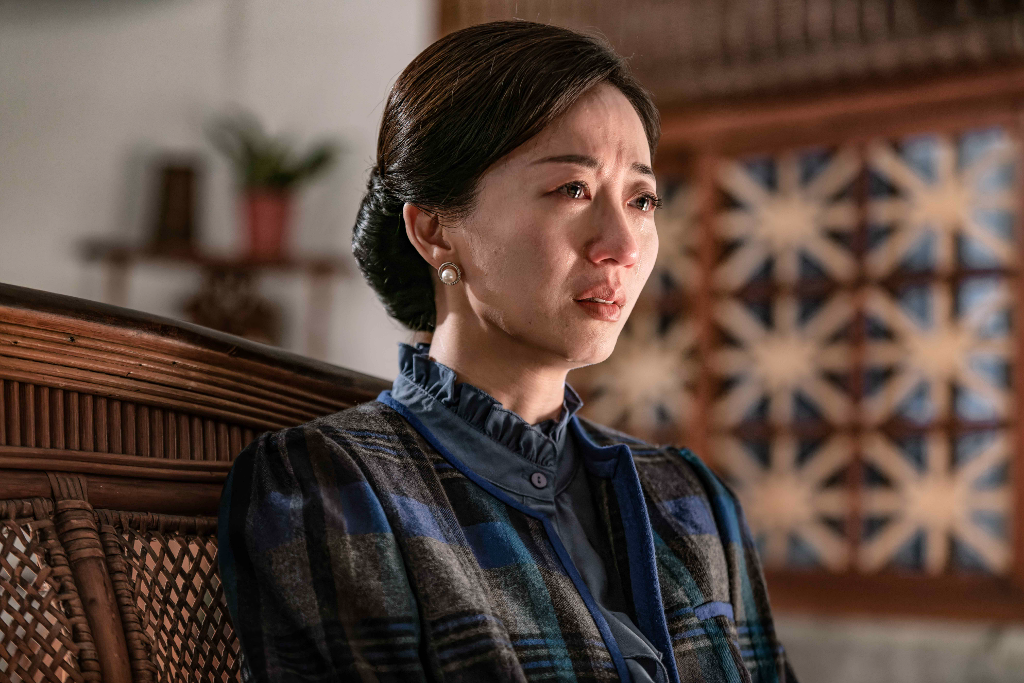 ▲ 米可白(左)見到劇中父親孫鵬(右二)離別的眼神,控制不住情緒飆淚,右為飾演母親的潘奕如。(圖:公視、禾豐製作)