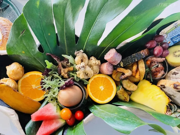 ▲ 結合當地小農「拐瓜劣棗」的芝麻葉、山苦瓜、玉米筍等季節時蔬,讓人品嚐澎湖風土的滋味。(圖片提供:小島家)